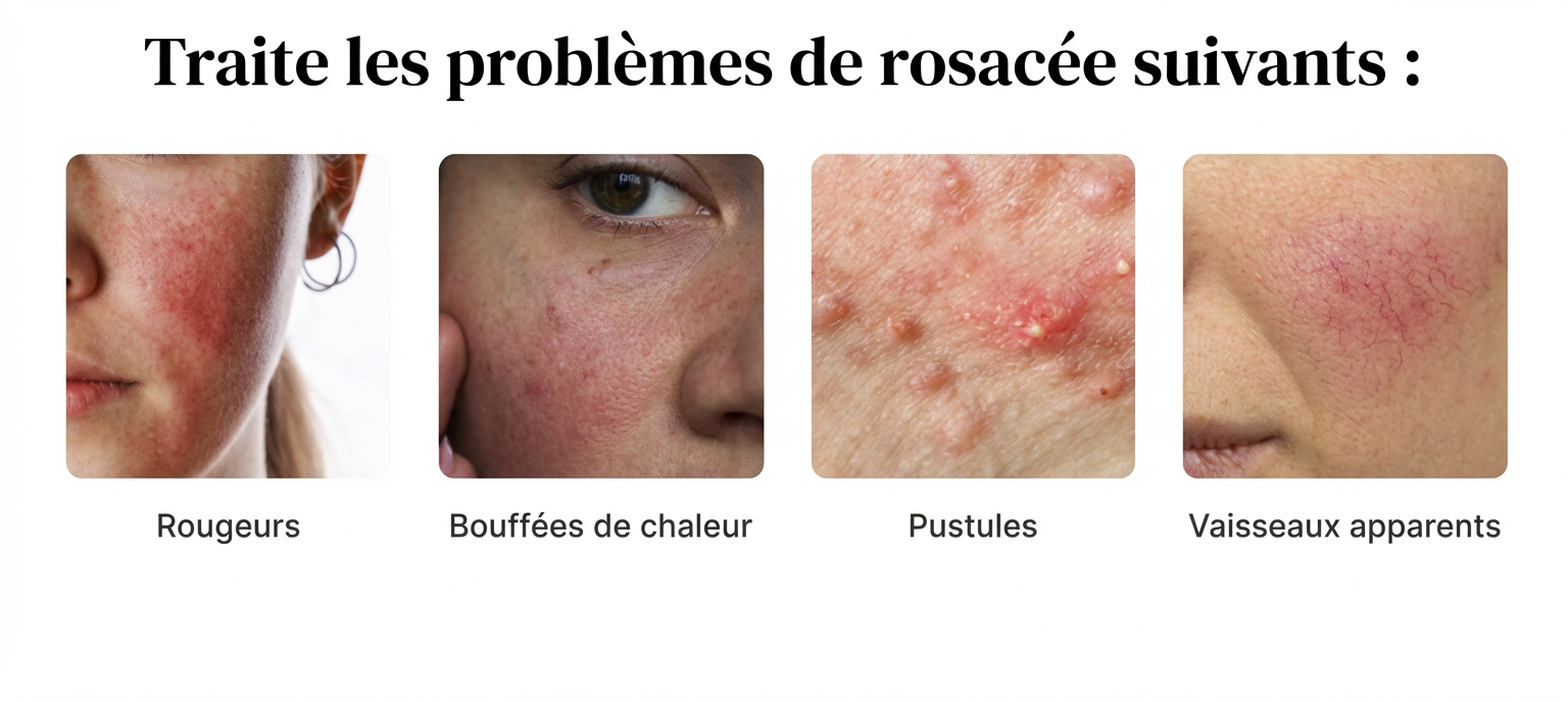 - Formulé sous contrôle dermatologique avec des actifs adaptés aux peaux rosacées